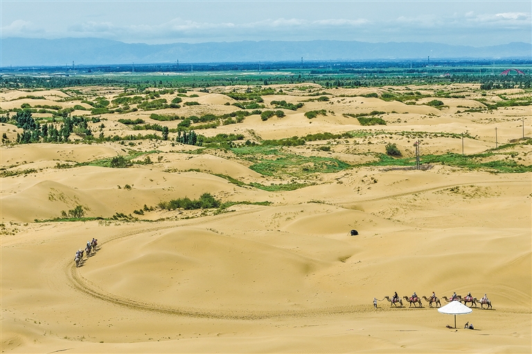 在筑牢生态屏障的同时,内蒙古积极探索绿色发展新路径。截至5月底,全区新能源总装机达到14309万千瓦,占全区电力总装机的52%,成为全国首个新能源装机突破1.4亿千瓦的省区。据测算,目前内蒙古已并网的新能源装机每年可产生约3000亿千瓦时绿色电力,相当于节约标准煤9300万吨,减少二氧化碳排放约2.47亿吨。从黄沙漫漫到绿意盎然,从资源依赖到创新驱动,内蒙古正在实现生态效益与经济效益的双赢。