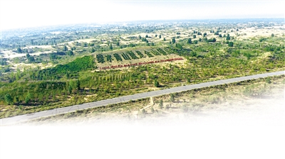 库布其沙漠像是一道绿色屏障保护着色登的家。