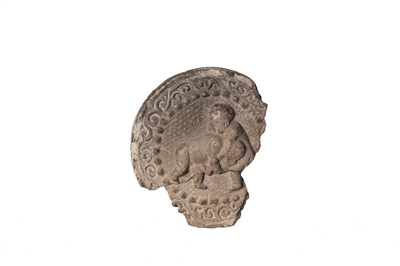 和林格尔土城子遗址还出土了很多响当当的文物,比如1988年面世的北魏角抵瓦当,现为盛乐博物馆的镇馆之宝。这枚残损的瓦当灰色陶质,呈圆形,直径13厘米,外侧忍冬纹,内侧连珠纹,中间以网格纹为地纹。在瓦当正中间浮雕有两个圆润稚拙的孩童,一人环抱对手头部,一人俯身紧搂其腿,呈角抵之姿,造型憨态可掬。这枚瓦当以童趣盎然的浮雕,凝固了草原文化与中原文化交融瞬间,是鲜卑文化融入中华文化的有力证据。