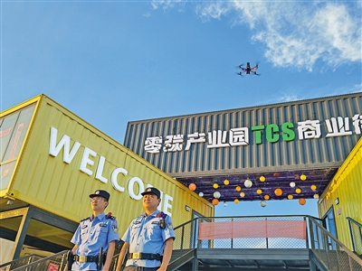 近日,鄂尔多斯市伊金霍洛旗公安局利用无人机空中视角实时精准掌握蒙苏经济开发区零碳产业园治安动态,以科技赋能公安工作,实现警情派遣处置“加速度”。本报记者 王皓 摄