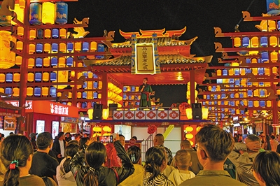 华灯初上,乌兰察布之夜铺展出一幅璀璨画卷。古香古色的街区流光溢彩,主题演绎舞台上的展演精彩不断,各类商品琳琅满目,特色美食飘来诱人香气……来自五湖四海的游客徜徉其中,度过美好愉悦的休闲夜晚。