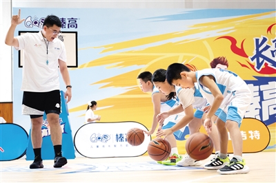 8月19日,小朋友在老师的指导下进行运球训练。当日,2025年小小CBA榛高夏令营呼和浩特站开营,来自全国多个省区市的小朋友欢聚一堂,共同感受篮球魅力。本报记者 怀特乌勒斯 摄