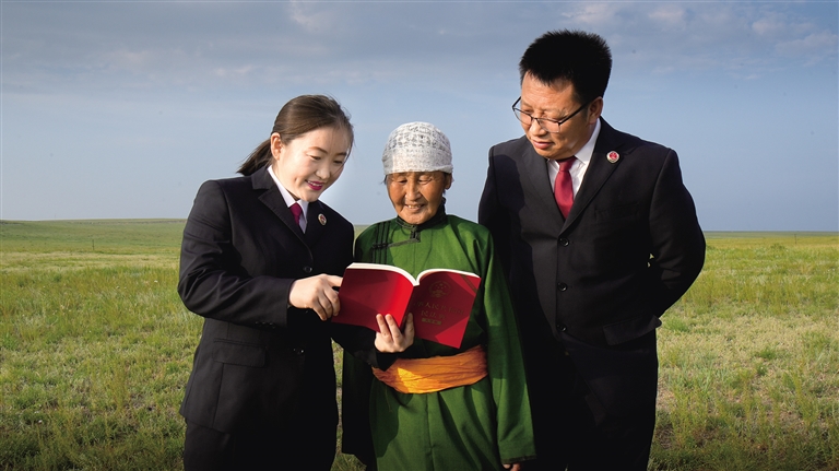 融出新模式。“一个红书包,一条草原路,一条无垠的彩虹连接你我。”这首《红书包之歌》把人们带回到半个世纪前的苏尼特右旗。巴彦乌拉嘎查发起“红书包”送学活动,将首批印有“红书包”和“为人民服务”字样的书包装满党的政策等学习资料,打包分给各民兵队伍、妇女组织、青年小组和学校。如今,“红书包”志愿服务队采取“一线四包”的服务模式,把法律知识送进每一个蒙古包,也让法治的种子在草原上生根发芽。这一模式不仅传播了法律知识,更让跨越时空的红色文化焕发出时代光芒。