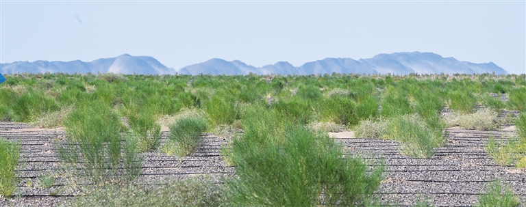 (压题图:内蒙古阿拉善盟西部荒漠综合治理项目(二期)额济纳河片区。 本报记者 孟和朝鲁 摄)