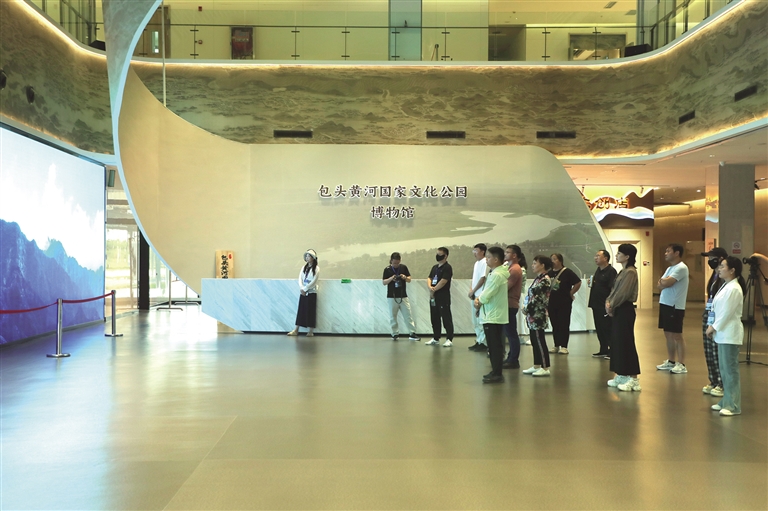 包头黄河国家文化公园则以现代科技为载体,让黄河文化“活”了起来。公园位于黄河北岸小白河湿地旁,52842平方米的空间内,文化广场通过地面肌理再现黄河“几字弯”,城墙型建筑讲述包头黄河段两千多年水运史,实景群雕像还原“水旱码头”与“走西口”场景。核心建筑博物馆内设七大展厅,借助裸眼3D、光电沙盘、沉浸式环幕影院、AR/VR互动等技术,展示黄河湿地的历史、现在与未来。“这里用最现代的方式展现黄河的自然变迁、文明演变,想了解黄河文化,一定要来这里。”媒体团成员参观后纷纷点赞。