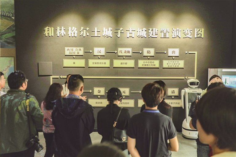 在呼和浩特市和林格尔土城子国家考古遗址公园,媒体团触摸到了黄河“几字弯”的千年文明印记。这座又称“盛乐古城”的遗址,是黄河“几字弯”北岸最大古代城市遗址,城镇建置的历史长达2000余年,今年6月入选国家考古遗址公园名单。在遗址展示馆内,春秋“耳铸公剑”青铜剑、汉代铜镜、北魏角抵瓦当等文物见证着农耕文化与游牧文化的交往交融;站在观景台远眺,依据历史记载种植的大豆、小麦、谷子,与“四城嵌套”的遗址格局相映成趣。“这里就像一部立体编年史,每一步都仿佛在与历史对话。”中国兰州网全媒体中心副主任王槿湉的感慨,道出了遗址公园的文化魅力。
