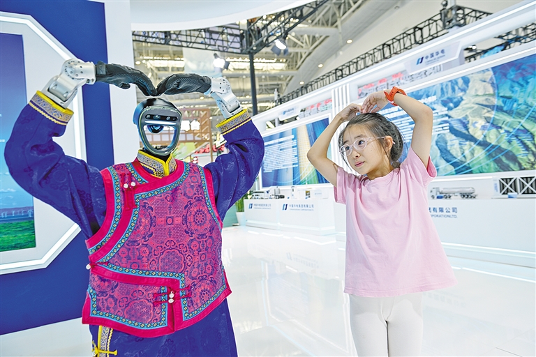 8月27日,呼和浩特敕勒川国际会展中心热潮涌动,第五届中蒙博览会正在这里如火如荼进行。本届博览会紧扣“深化互利合作 推进合作共赢”主题,在商品贸易的洽谈中传递合作温度,在文化互动的交融里凝聚友谊共识,更以科技为笔勾勒创新图景,浓郁的科技范儿渗透在展区的每一个角落,为到场者打造了一场兼具视觉冲击与未来想象的科技创新盛宴。