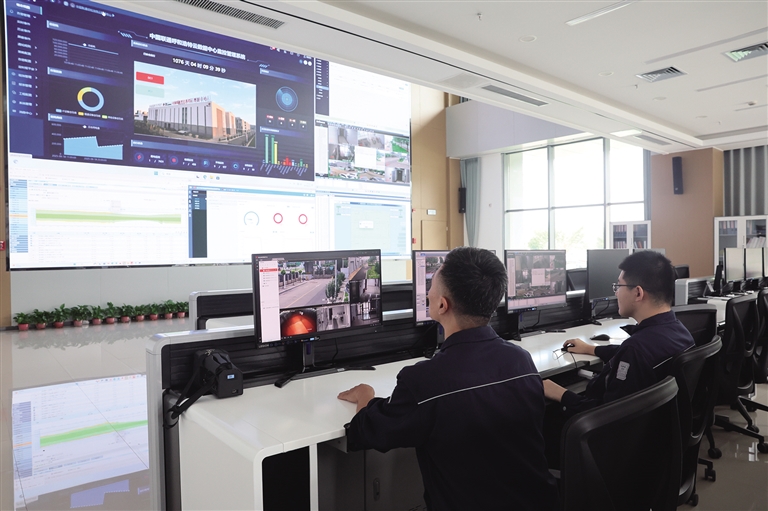 推开云数据中心机房的大门,恒温恒湿的气流扑面而来,目光所及,一排排黑色机柜紧密排列,指示灯如繁星般规律闪烁,机柜上方的蓝色LED屏实时显示着当前温度、湿度与电力负载数据。“这里部署的是联通云服务器,主要为京津冀地区的金融、政务客户提供算力存力资源,目前机柜上架率已达82%,所有设备运行稳定。”产业园运维工程师李鹏飞持平板电脑,一边查看实时监控系统,一边向笔者介绍。顺着他手指的方向,屏幕上清晰呈现出每台服务器的CPU使用率、内存占用量,一旦出现数据异常,系统会自动触发三级预警机制,运维团队可在15分钟内响应处置。