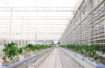 8月26日,走进土默特左旗阿勒坦农牧业发展投资有限责任公司的凯盛一号智慧温室,笔者看到温室主体已经完工,工作人员正在进行番茄苗的移栽。