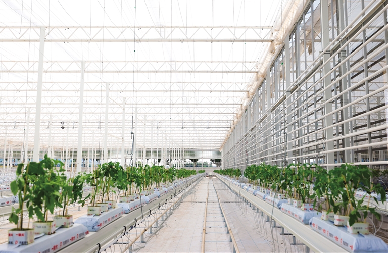 “智慧温室全部采用传感器与自动化环境控制系统,不仅能够实现温、光、水、气、肥全流程数据化精准管理,还能将作物产量提高到传统种植方式的6至8倍。”土默特左旗阿勒坦农牧业发展投资有限责任公司总经理周立丰说,“温室主要种植樱桃番茄,设有番茄生产中心、分拣包装中心、冷链物流配送中心三大功能区,着力打造集种植、加工、仓储、销售于一体的高端设施农业项目,现已完成基础工程,预计年底全部完工并投产。项目达产后,年产樱桃番茄3100吨、年产值9200万元,可新增就业岗位约200个。”
