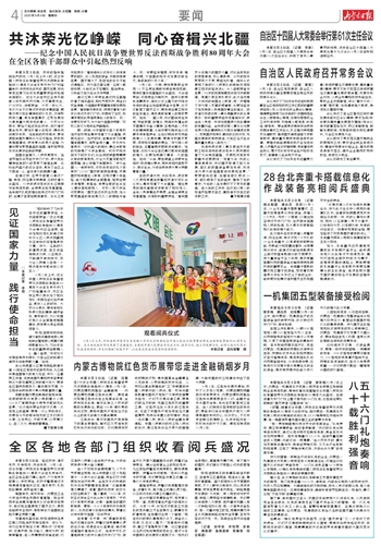 当8万羽和平鸽展翅高飞、8万只气球腾空而起,包头市昆都仑区少先路第十一小学大会议室里,师生们不约而同地发出欢呼声。坐在孩子们中间的校长马利芳眼眶有些湿润:“这画面真是太震撼了,有着‘国防科技梦’的孩子们已经期待了一整个暑假。”2025年,该校正式被命名为包头市少年军校。“于我们少年军校而言,这是一堂鲜活的国防教育课。愿每一个从少年军校成长起来的人,永远记得今日阅兵的晨光,带着这份赤诚报效祖国。”马利芳说。