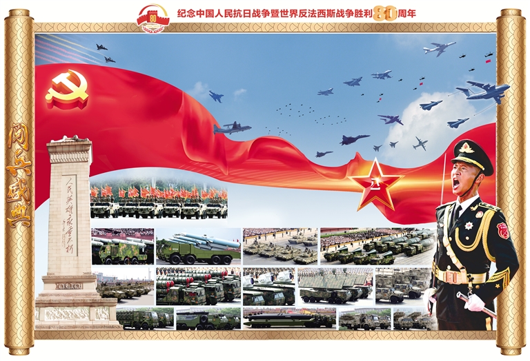 80面抗战英模部队荣誉旗帜组成的战旗方队,承载着历史荣光浩荡而来。这些英雄的旗帜、胜利的旗帜、不朽的旗帜,激励着人民军队勇往直前。装备方队编组陆上作战群、海上作战群、防空反导群、信息作战群、无人作战群、后装保障群、战略打击群隆隆驶来,接受检阅。新型坦克、无人智能、网电作战、高超声速、防空反导、战略导弹……从抗战时期土枪土炮到今天新型作战力量,国产现役主战装备和战略重器在天安门城楼前一一通过,展示坚决捍卫国家主权安全发展利益、坚定维护世界和平的钢铁意志和强大实力。
