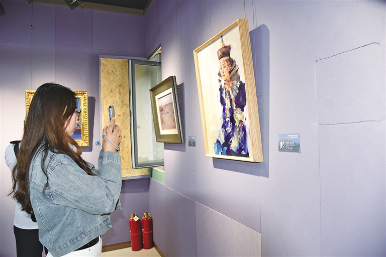 9月5日,市民在观看画展。当日,“北疆印迹”中蒙俄小幅油画作品展览在巴彦淖尔市河套文艺展厅开展,中蒙俄3国共有100幅油画精品参展。这些作品题材广泛,风格各异,涵盖风景、人物、静物等多种主题,生动展现了3国独特的自然风光、人文风情和艺术风貌。本报记者 图古斯毕力格 摄