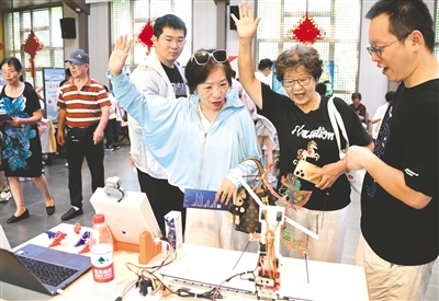 9月13日,社区居民在活动现场参与体验。9月13日,2025年上海市“全国科普月”活动在浦东新区周家渡街道举办科技创新成果展。活动聚焦“互动性、体验感、生活化”,邀请上海科技馆、上海中医药博物馆、上海集成电路科技馆、上海东方地质科普馆等多家科普基地共同参与,覆盖自然生态、智能科技、前沿制造、健康生活等多领域,吸引不同年龄层的社区居民参与体验互动。 新华社记者 刘颖 摄