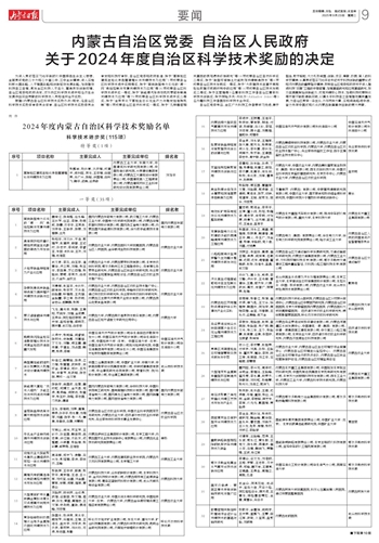 内蒙古自治区党委 自治区人民政府 关于2024年度自治区科学技术奖励的决定