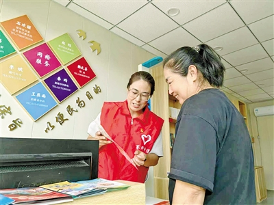 为进一步提升惠民政策服务的广泛性、精准性,包头市九原区制作“感党恩、听党话、跟党走”惠民惠农政策明白卡,让党的惠民政策家喻户晓、人人皆知。图为近日,赛汗街道建华社区工作人员向前来办事的群众讲解明白卡上的内容。刘怡敏 摄