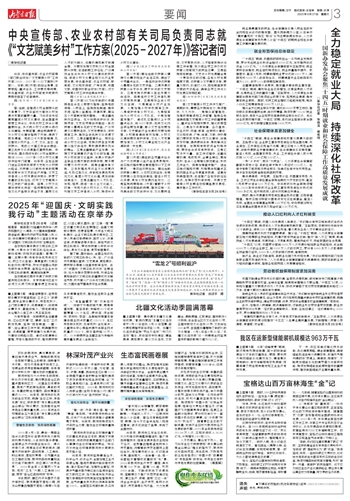 中央宣传部、农业农村部有关司局负责同志就 《“文艺赋美乡村”工作方案(2025-2027年)》答记者问