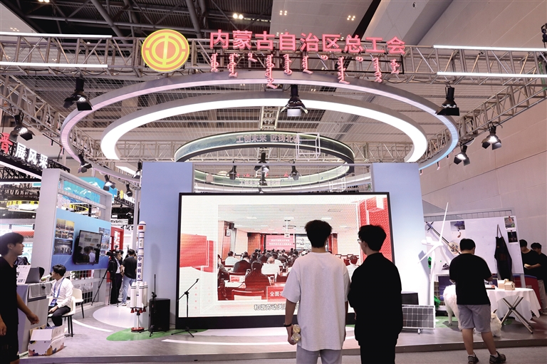 内蒙古展区紧扣自治区贯穿一条主线、办好两件大事的工作大局,将科技感、工业风与北疆文化深度融合,构建起“5大板块+2大专区”的立体化展示格局,全方位呈现内蒙古产业工人队伍建设改革成效与工匠的创新活力。