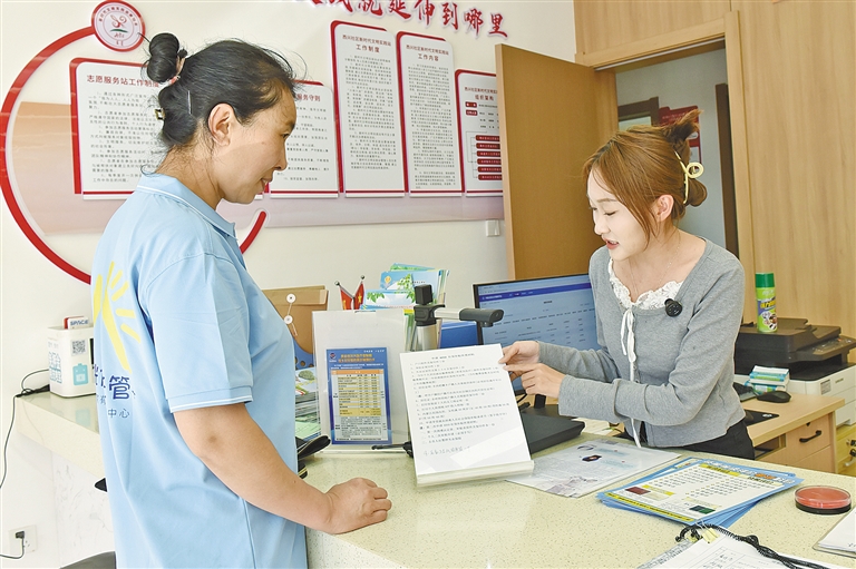 “请您点击这里,填报信息提交申请……”在呼和浩特市赛罕区敕勒川路街道西兴社区,社区民生志愿者陈乐一遍遍手把手地指导居民们在手机上办理领取失业金、养老金等业务。作为社区窗口工作的一员,陈乐感慨:“我们的工作虽琐碎但很有意义,能够切实帮助居民们解决问题,让我感到心里非常踏实。”