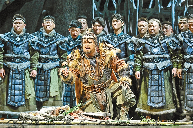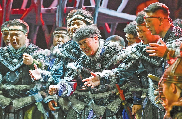 此次冲击文华奖,剧组从一个多月前便进入密集备战状态。排练厅里,从清晨到深夜的琴声与歌声从未间断,演员们为贴合剧情反复调整发声状态,乐手们则针对演员与交响乐团的融合细节不断打磨。“为了让角色更鲜活,光我自己的唱腔段落就改了不下十次,每次改动都要重新理解情感逻辑,一个衔接的节拍要练习几十遍、上百遍才能找到最佳状态。”剧中希格西热的扮演者乌德勒夫说,不少团队成员推掉了个人工作,全身心投入排练,“能带着这部家乡原创作品站在文华奖终评的舞台,是对我们作品的肯定,大家都觉得再辛苦也值得。”