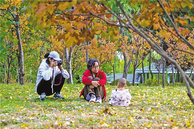 深秋的呼和浩特市扎达盖公园内层林尽染、秋色正浓。红、黄、绿等缤纷色彩交织的林木花草间,市民游客们漫步赏秋、拍照打卡,尽享这份独属于秋日的惬意与浪漫。