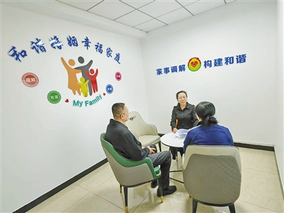 10月11日,在兴安盟妇联依托基层“妇女之家”设立的“北疆和姐”婚姻家庭纠纷调解室,调解员正在疏导一对因家庭琐事产生矛盾的夫妻。