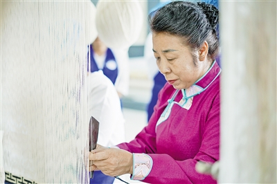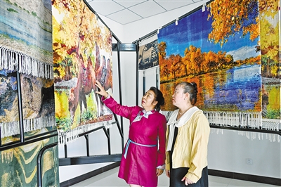 走进阿拉善右旗民族工艺地毯有限责任公司的展厅,映入眼帘的是各类花色丰富、古朴典雅、质地实密的地毯。“这是‘三蓝’仿古地毯,上面有梅兰竹菊、琴棋书画等中国传统图案,耐用度很高;这是丝织地毯,采用优质丝线原料精雕细琢而成,将传统工艺和现代审美进行了有机结合;这些地毯的图案有胡杨林、骆驼、曼德拉山岩画等,融入了我们阿拉善地区的特色元素……”该公司董事长冯桂英向记者娓娓道来每一种产品的特色亮点,言语间满是珍视和热爱。