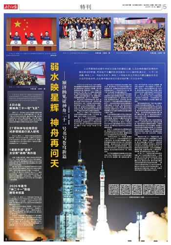 武飞10月30日在问天阁与中外媒体记者集体见面时激情澎湃地说:“作为航天员队伍中最年轻的一员,迎来自己的飞天任务,我深感无比幸运。这份幸运,源于我们正处于一个航天事业跨越式发展的伟大时代——我们的空间站已经成为璀璨星河中最闪耀的‘太空之家’;源于常态化的天地往返让年轻一代有了更多、更早为国出征的机会;更源于成千上万名科研工作者用智慧和汗水为我们搭建起这座通往星辰大海的‘天梯’。”