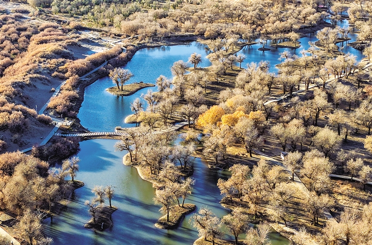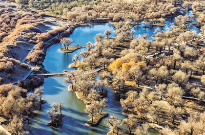 这是近日拍摄的胡杨林(无人机照片)。晚秋时节,内蒙古额济纳旗的胡杨林别有风骨,苍老遒劲,美不胜收。新华社发