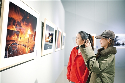 “亮丽内蒙古·最美火焰蓝”——深入学习贯彻习近平总书记向国家综合性消防救援队伍授旗致训词七周年主题摄影展日前在内蒙古美术馆开幕。本次展览是内蒙古消防救援队伍忠实践行训词精神的生动实践,集中展出了19幅获奖作品和40幅参展作品。图为观众在参观摄影作品。本报记者 怀特乌勒斯 摄