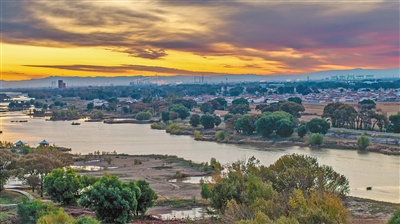 清晨的呼和浩特市大黑河郊野公园朝霞灿烂,成为秋日里的一道灵动风景线。随着东方泛起鱼肚白,红日跃出地平线,橘红、绯红、金红交织的火烧云铺满天空,宛如打翻了的调色盘。漫天霞光倒映在大黑河水面,动静交织的自然美景,为秋日青城增添了别样生机。本报记者 王磊 摄