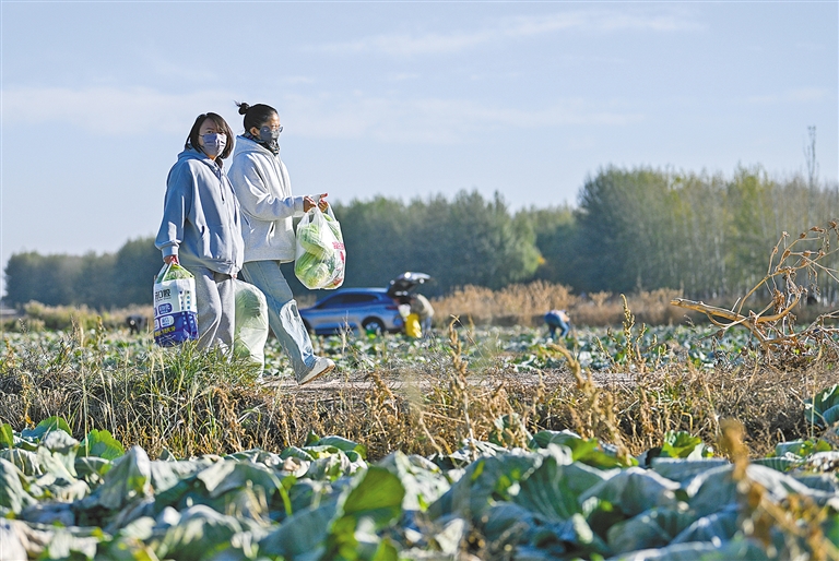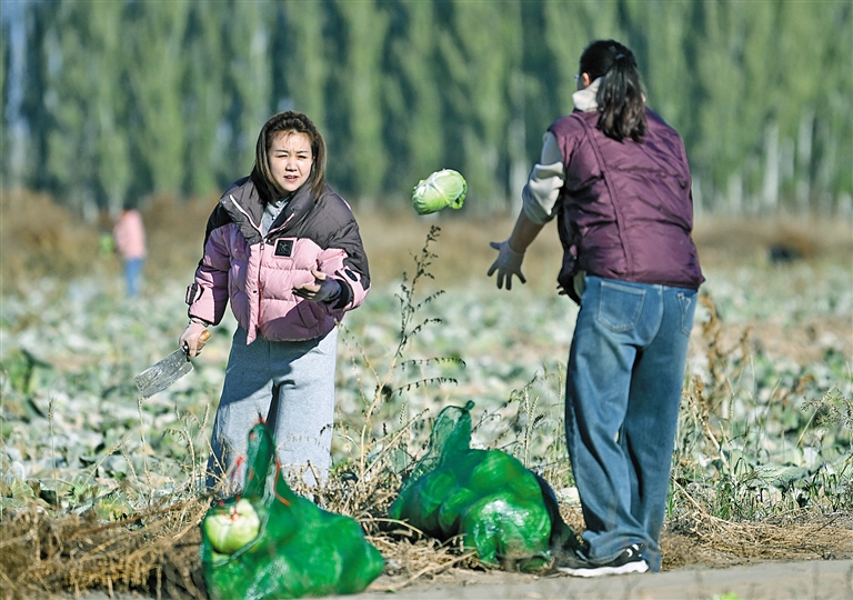 秋日里,丰饶的河套平原处处浸染着丰收的喜悦。在巴彦淖尔市临河区双河镇,这份喜悦不仅属于辛劳的农人们,也跃动于游人“捡秋”的步履间。当地开展麦后复种所种植的400亩扁包菜,头茬收获完毕后,二茬邀请市民游客前来体验秋收乐趣,感受田园风情。