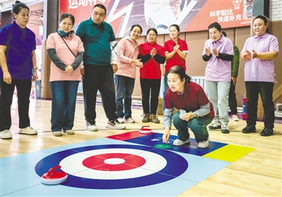 11月5日,参赛者在进行陆地冰壶比赛。当日,“残健共融 悦享运动”呼和浩特市玉泉区残疾人趣味运动会在劢立体育文化产业园举行。运动会设置拔河、轮椅竞速、沙包投掷等项目,让参与者在欢乐的运动氛围中释放活力、强健体魄,展现自强不息的精神风貌。本报记者 孟和朝鲁 摄
