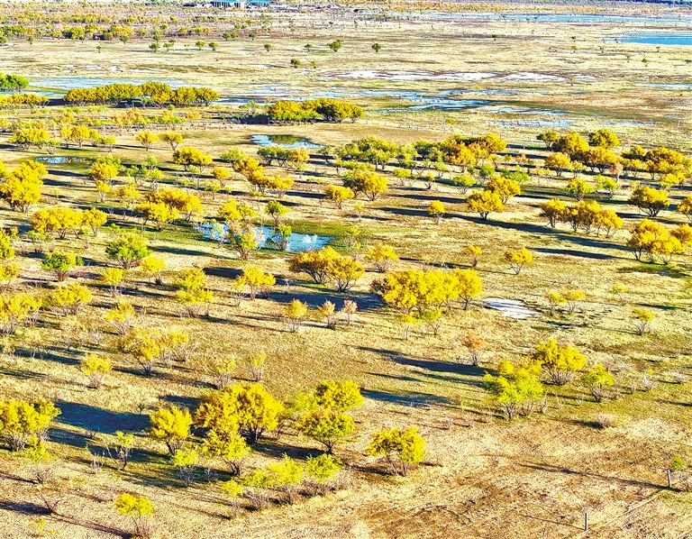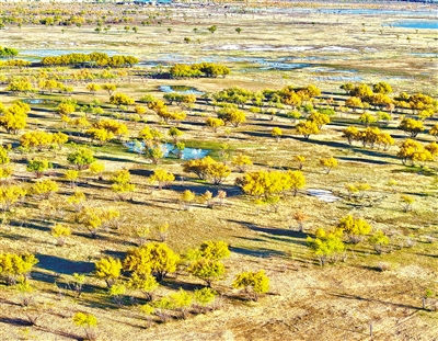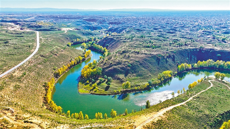 霜降过后, 万物更显静谧。在鄂尔多斯市鄂托克前旗城川镇,有着古“河套人”故乡美誉的大沟湾景区,披上了金色盛装。这片曾经饱受风沙侵扰的土地,如今正演绎着人与自然互惠多赢的生态交响曲。