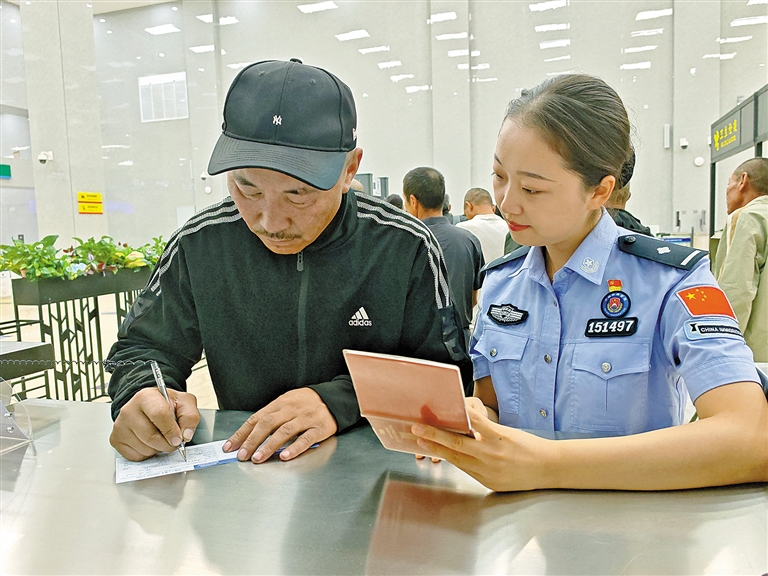 “你好!”11月4日,甘其毛都边检站女民警杨卿、任彦文微笑着问候着旅客。接过护照、仔细核对、递还护照……从咨询岗位到持章验证,她们总是面带微笑;碰到存在困惑的旅客,她们耐心解释……在她们看来,国门不仅是国家主权的象征,更是展现中国良好形象的窗口。