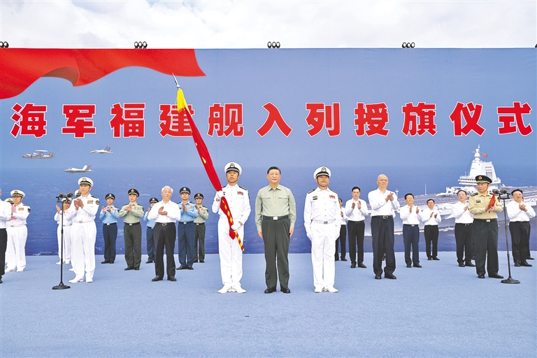 习近平对我国航母建设发展一直很关注。仪式结束后,习近平登上福建舰,听取我国航母建设发展工作汇报,了解航母体系作战能力生成、电磁弹射系统建设运用等情况。