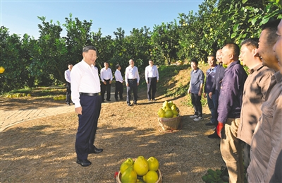 离开时,习近平同村民们亲切道别。他叮嘱,党和政府要继续加强对老区的政策扶持,老区广大干部群众要齐心协力、奋发图强。他祝愿乡亲们的日子过得像金柚一样又甜又美。