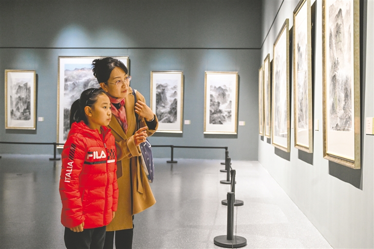 11月8日,观众在内蒙古博物院欣赏画作。当日,“守正创新 笔墨流金——靳尚谊、杨飞云、蒋威、刘万鸣绘画作品联展”在内蒙古博物院开展,展览汇聚4位艺术家的103幅艺术精品,题材涵盖人物肖像、风景、山水、花鸟,既展现古典油画的意象塑造,也呈现出中国文人水墨的写意精神,为北疆冬日注入深厚的人文艺术温度。展览将持续展出1个月。本报记者 王磊 摄