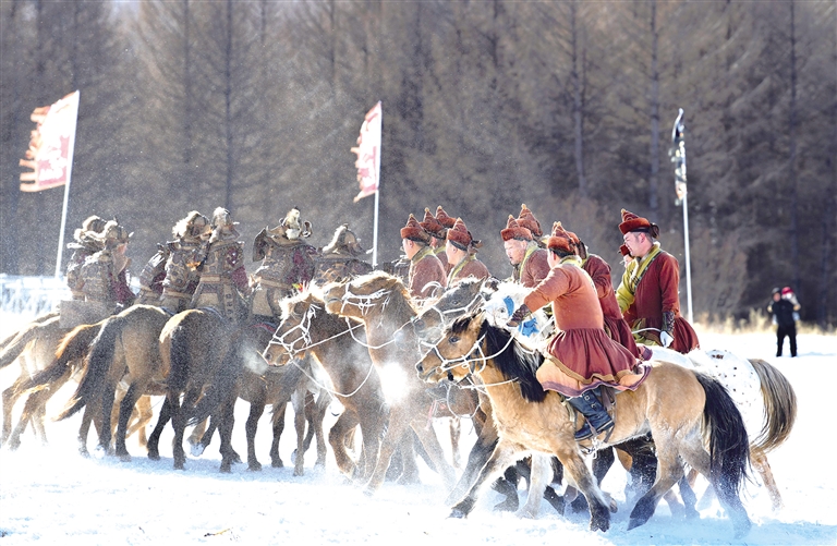 自举办首届冰雪节至今已二十载,阿尔山从初探冰雪旅游,发展成为引领北疆冰雪经济的重要枢纽。当地始终坚持“冰天雪地也是金山银山”理念,构建“冰雪为核、产业联动、全域赋能”的发展格局,实现从“一季火热”到“全季兴旺”的跨越。开幕式上,点火仪式将气氛推向高潮,七彩祥云烟花绽放,燃起的火炬象征着二十年冰雪热情的传承,也印证“阿尔山旅游一定会火起来”的坚定信念。在森林牧场分会场,第二届冰雪那达慕同步启动,蒙古马方阵、越野车与雪地摩托巡游、马术特技表演等节目,为观众呈现了一场气势磅礴的冰雪文化盛宴。
