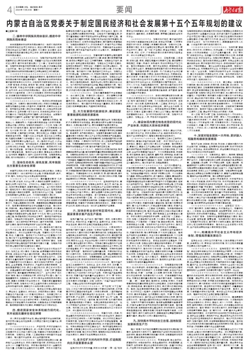 内蒙古自治区党委关于制定国民经济和社会发展第十五个五年规划的建议