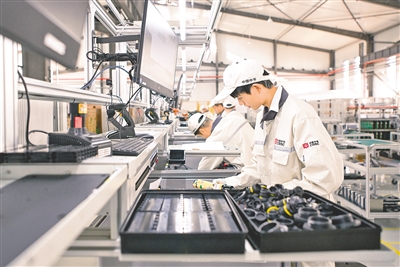 11月30日,在位于巴彦淖尔市临河区的株洲中车时代电气巴彦淖尔分公司生产车间内,工作人员正在生产光伏逆变器。据了解,该公司拥有完整的“芯片—器件—装置—系统”自主开发及创造平台,生产光伏逆变器、储能PCS、风电变流器、制氢电源等新能源核心装备的制造能力。本报记者 孟和朝鲁 摄