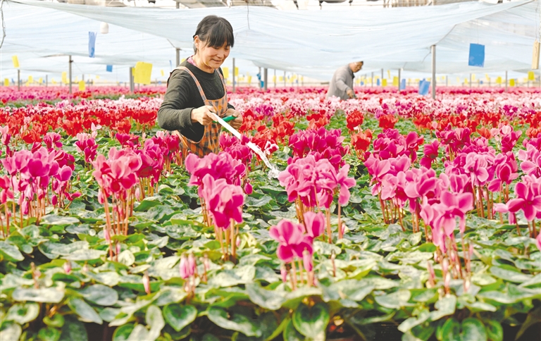 11月30日,花农在管护花卉。日前,在河北省石家庄市栾城区农林高科技园区花卉基地,20万株各类花卉娇艳绽放,花农们精心挑选并打包发货,供应市场。近年来,栾城区积极引进优质种苗与先进管理技术,持续推动花卉产业向标准化、品牌化发展,为县域经济发展注入新活力。 新华社发