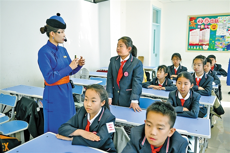 课堂上,内蒙古博物院的讲解员通过图文、短视频还原文物历史背景,拆解“选料、切割、雕琢、抛光”的古代制玉工艺,更结合“礼制玉器”的用途,解读“君子比德于玉”背后的文化内涵。“不是让孩子死记硬背,而是帮他们读懂文物里的审美与精神。”讲解员夏慧说。