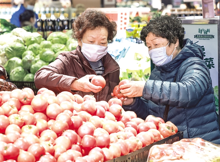 12月10日,消费者在湖北省武汉市中商徐东平价广场选购蔬菜。国家统计局12月10日发布数据显示,11月份,居民消费持续恢复,全国居民消费价格指数(CPI)环比略降0.1%,同比上涨0.7%,涨幅比上月扩大0.5个百分点,为2024年3月份以来最高。扣除食品和能源价格的核心CPI同比上涨1.2%,涨幅连续3个月保持在1%以上。 新华社发