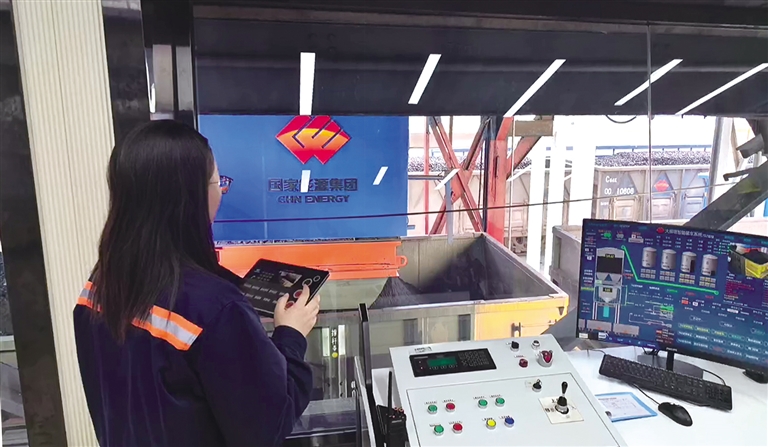 在神东大柳塔选煤厂装车车间内,装车操作员孙亚妮手持一台智能平板,指尖轻点屏幕,装车系统的给煤机便应声启动,黑色的煤流精准落入车厢,直至最后一节车厢装载完成,缓缓驶离。