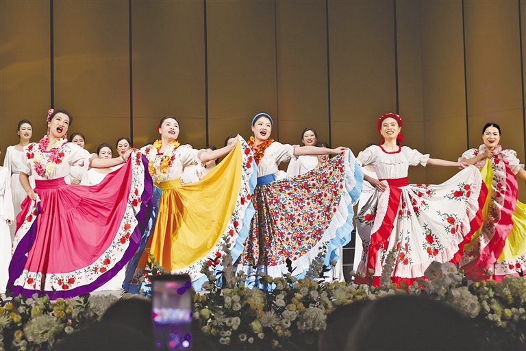 12月11日,在沙特阿拉伯宰赫兰,国家大剧院合唱团成员在音乐会上演唱歌曲。在中沙建交35周年之际,应沙特阿拉伯阿卜杜勒阿齐兹国王世界文化中心邀请,国家大剧院合唱团于12月11日晚在沙特东部城市宰赫兰举办音乐会。作为“2025中沙文化年”框架系列重要演出之一,国家大剧院合唱团为此次演出精心选取五大洲经典歌曲,以多元文化视角,带领当地观众领略各民族音乐的独特魅力。此外,沙特阿拉伯克罗拉合唱团也加入这场演出,与中国合唱团共同演唱了两国作品。