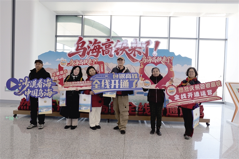 12月23日9时30分,在乌海站站前广场,不少来自全国各地的包银高铁建设者在此合影留念,空气中洋溢着节日般的喜悦,大家共同见证这一历史时刻。