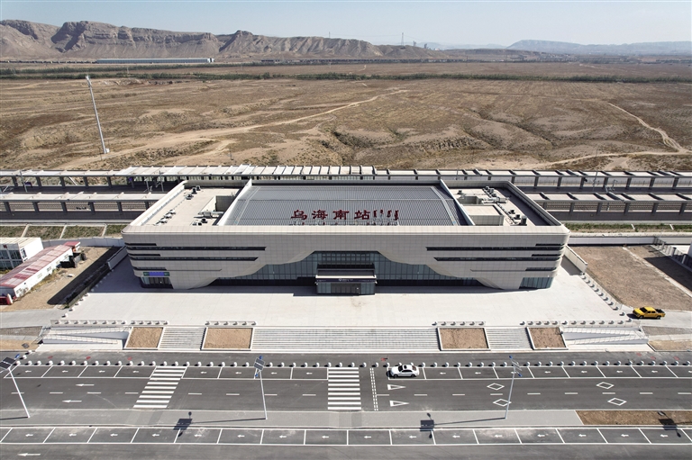 乌海站作为全线最大的新建站,站房建筑面积约10000平方米,站场规模达4站台11线。其现代流畅的“黄河波浪”造型设计,不仅承载着交通功能,更已成为乌海崭新的城市地标。