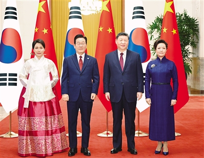 习近平强调,中韩两国长期坚持“以和为贵”“和而不同”,超越社会制度和意识形态差异,相互成就、共同发展。双方应延续这一优良传统,不断增进互信,尊重各自选择的发展道路,照顾彼此核心利益和重大关切,坚持通过对话协商妥善解决分歧。中共二十届四中全会审议通过“十五五”规划建议,为未来5年中国发展擘画蓝图,也为世界各国提供广阔机遇。中韩经济联系紧密,产业链供应链深度互嵌,合作互惠互利,要加强发展战略对接和政策协调,做大共同利益蛋糕,在人工智能、绿色产业、银发经济等新兴领域打造更多合作成果。双方要增进人员往来,开展青少年、媒体、体育、智库、地方等方面交往,让正面叙事成为民意主流。