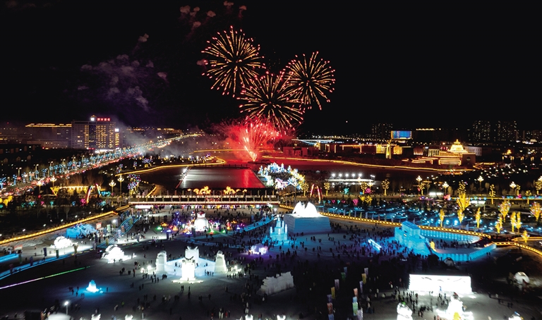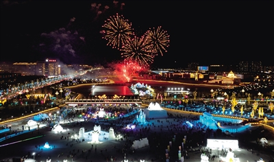 2026年元旦晚上,第二届锡湖冰雪欢乐汇盛装开园。